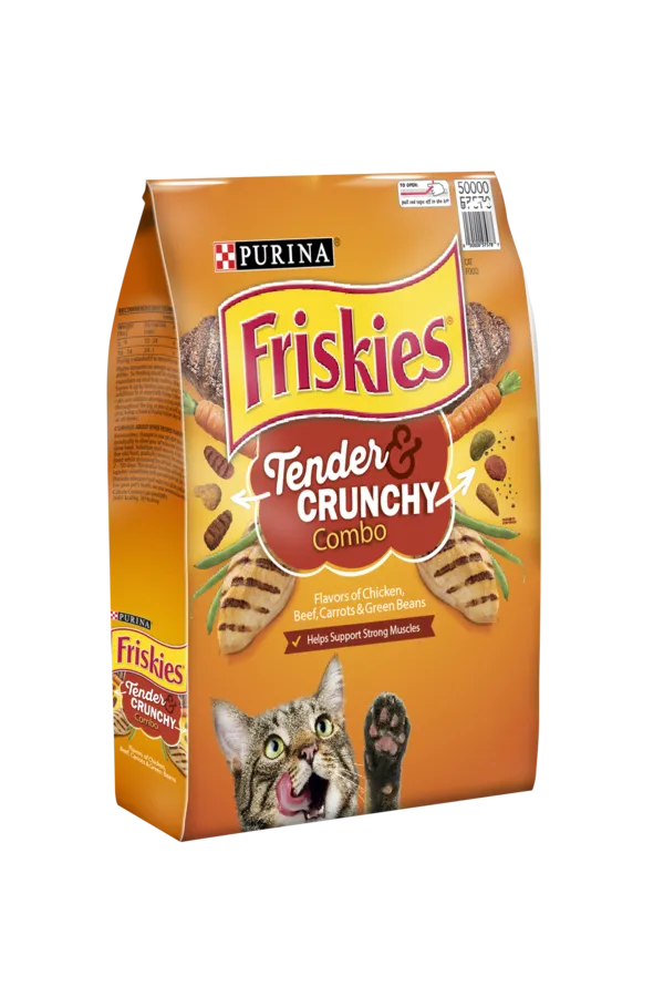 Purina® Friskies® Tender & Crunchy Combo está formulado para cumplir con los niveles nutricionales establecidos por los perles de nutrientes de alimentos para gatos AAFCO para el mantenimiento de gatos adultos.